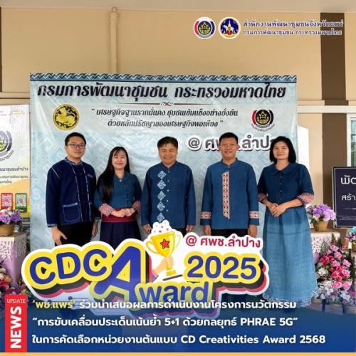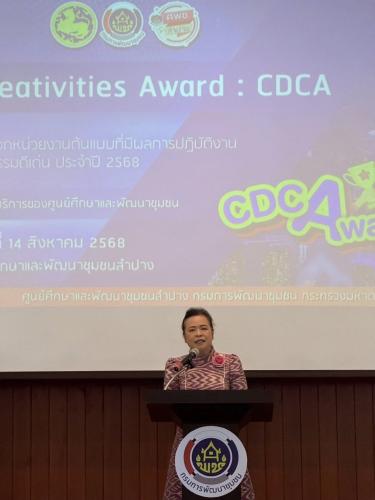 นางศุภลักษณ์ แก้วมณี ผู้ตรวจราชการกรมการพัฒนาชุมชน ปฏิบัติหน้าที่ผู้อำนวยการศูนย์ศึกษาและพัฒนาชุมชนลำปาง เป็นประธานคณะกรรมการคัดเลือกการคัดเลือกหน่วยงานต้นแบบที่มีผลการปฏิบัติงานและนวัตกรรมดีเด่น ประจำปี 2568 (CD Creativities Award : CDCA) ระดับเขตให้บริการของศูนย์ศึกษาและพัฒนาชุมชนลำปาง วัตถุประสงค์เพื่อแลกเปลี่ยนเรียนรู้นวัตกรรมการดำเนินงานพัฒนาชุมชน ระหว่างสำนักงานพัฒนาชุมชนจังหวัดในเขตภาคเหนือตอนบน ทั้ง 8 จังหวัด ได้แก่ เชียงราย เชียงใหม่ แม่ฮ่องสอน พะเยา แพร่ น่าน ลำพูน และลำปาง