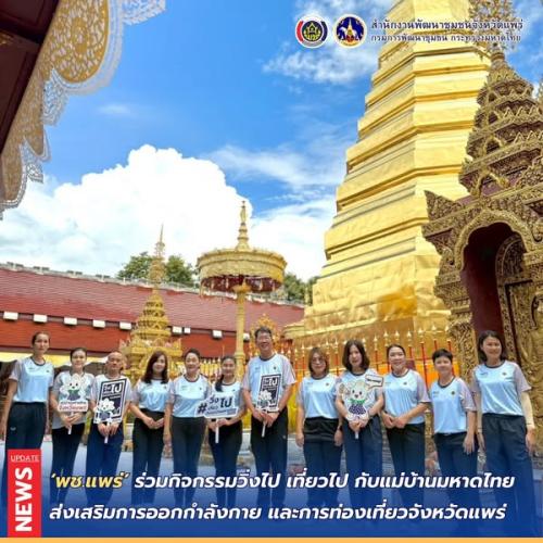 นายสมชัย เลิศประสิทธิพันธ์ ผู้ว่าราชการจังหวัดแพร่ พร้อมด้วย นางสาวฐิติมา สุภาพันธ์ ประธานชมรมแม่บ้านมหาดไทยจังหวัดแพร่ นำคณะหัวหน้าหน่วยงานรัฐวิสาหกิจในสังกัดกระทรวงมหาดไทย รองประทานแม่บ้านมหาดไทยและสมาชิกแม่บ้านมหาดไทยจังหวัดแพร่ ทำกิจกรรม “วิ่งไป เที่ยวไป กับแม่บ้านมหาดไทย” โดยมีจุดเช็คอินสถานที่ท่องเที่ยวสำคัญของจังหวัดแพร่ จำนวน 4 แห่ง ได้แก่