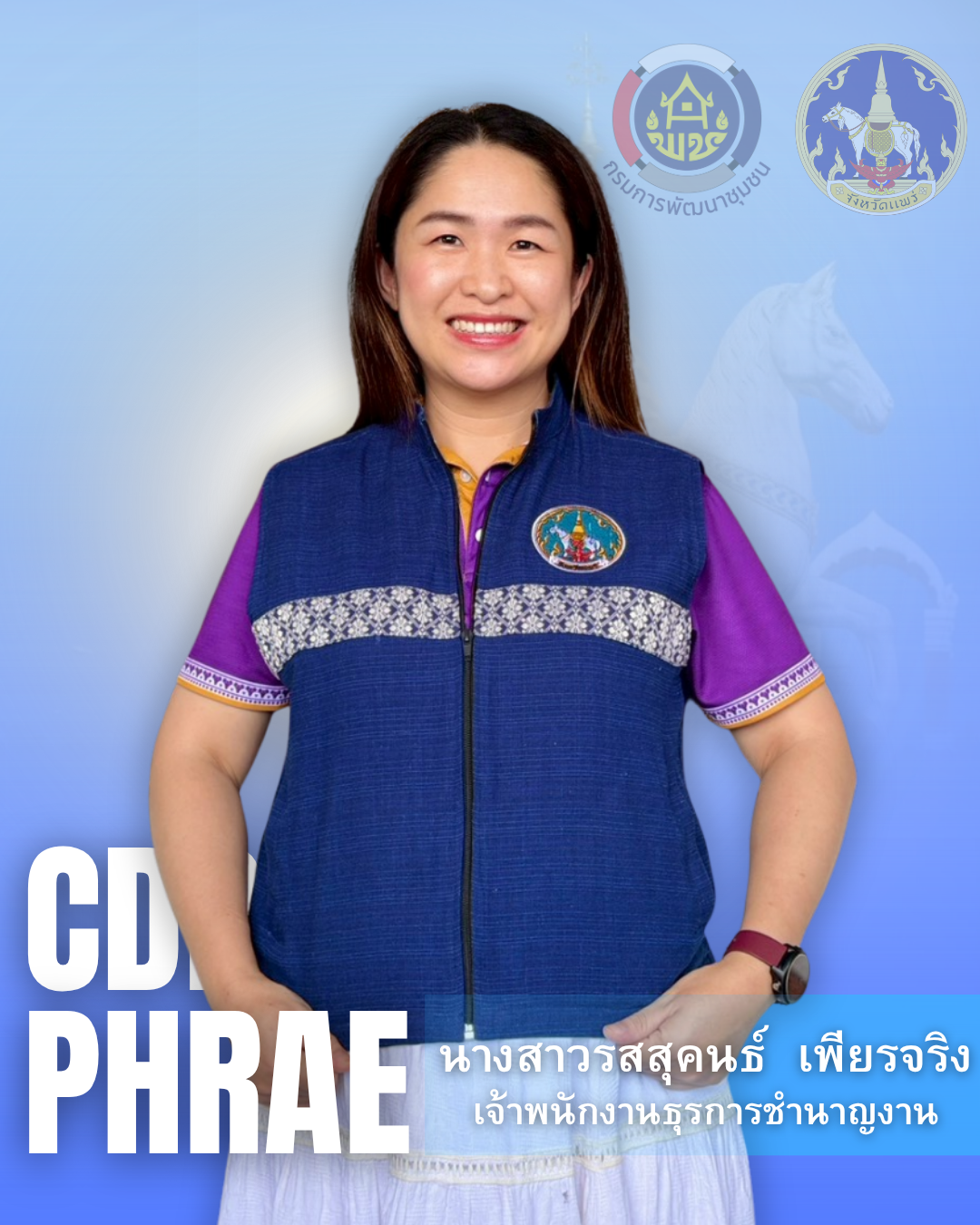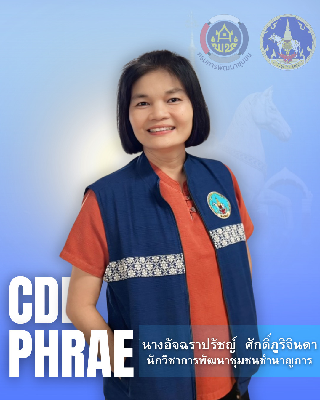 ![]() นางสาวอัจฉราปรัชญ์ ศักดิ์ภูริจินดา นักวิชาการพัฒนาชุมชนชำนาญการ |